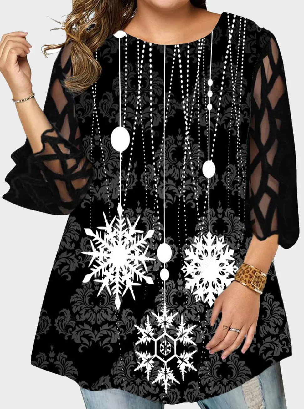 Christmas Plus Size Lace Sleeve T-shirt